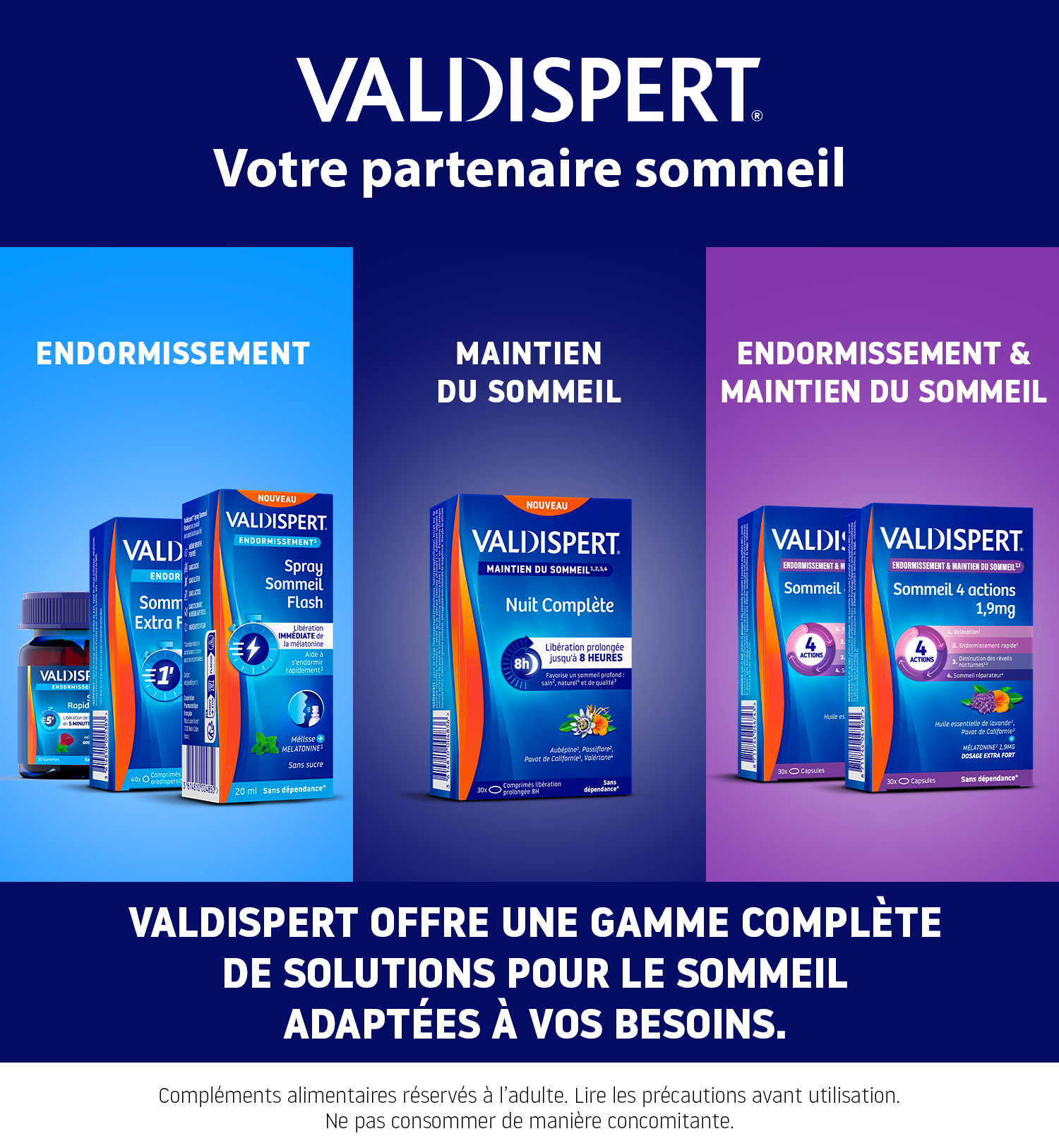Les compléments alimentaires Valdispert® sont sans dépendance ni accoutumance connues aux doses recommandées.